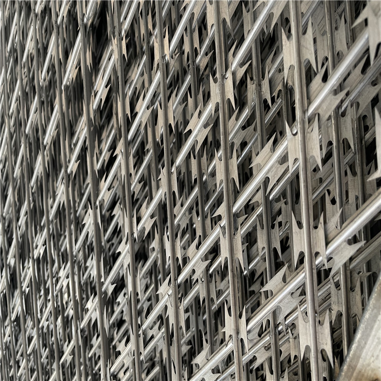 附加組件:在焊接網(wǎng)的上部或兩側(cè),通過專用支架或直接焊接固定刀片刺繩(刀片刺網(wǎng))。